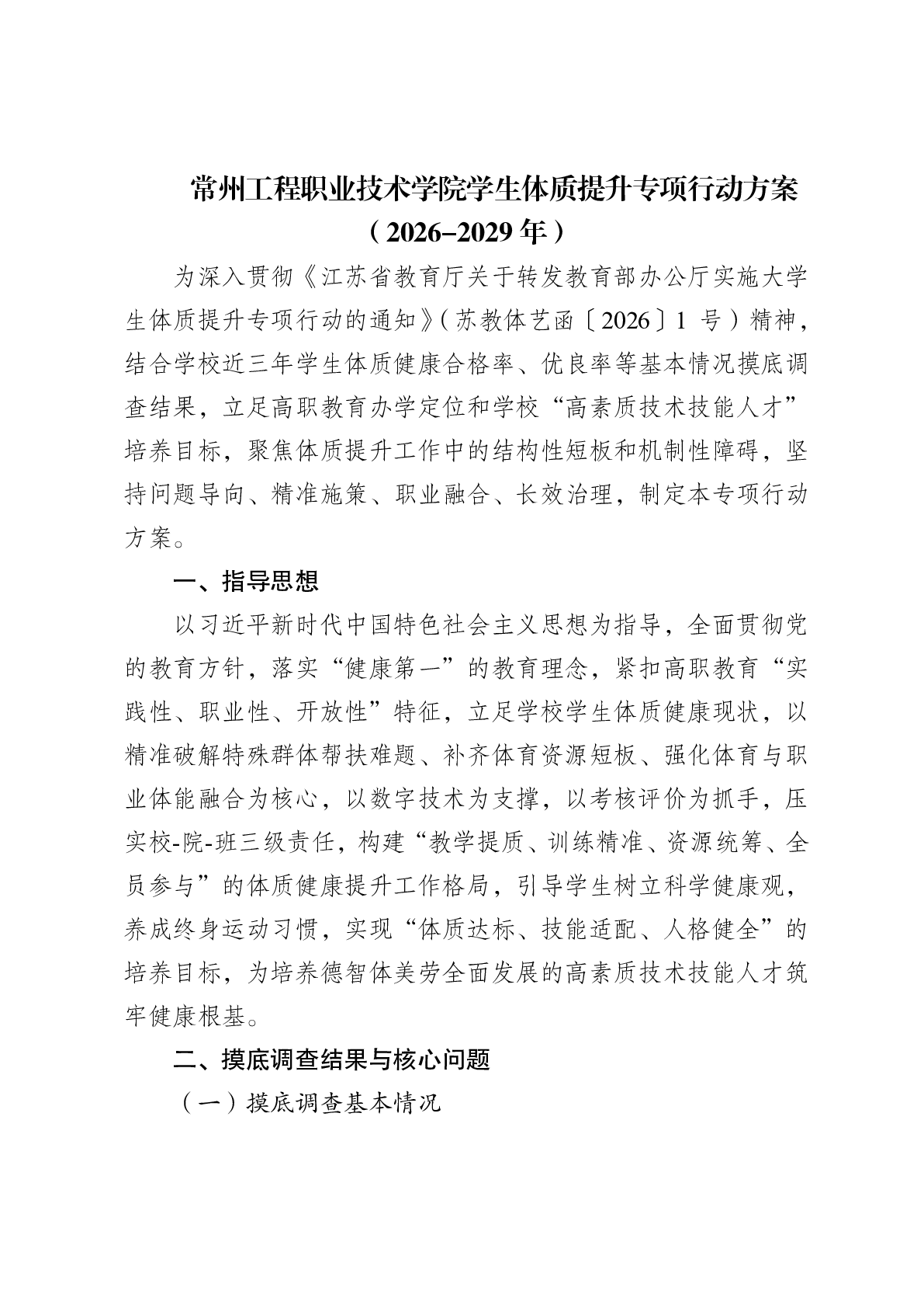 常州工程职业技术学院学生体质提升专项行动方案(2026-2029 年)